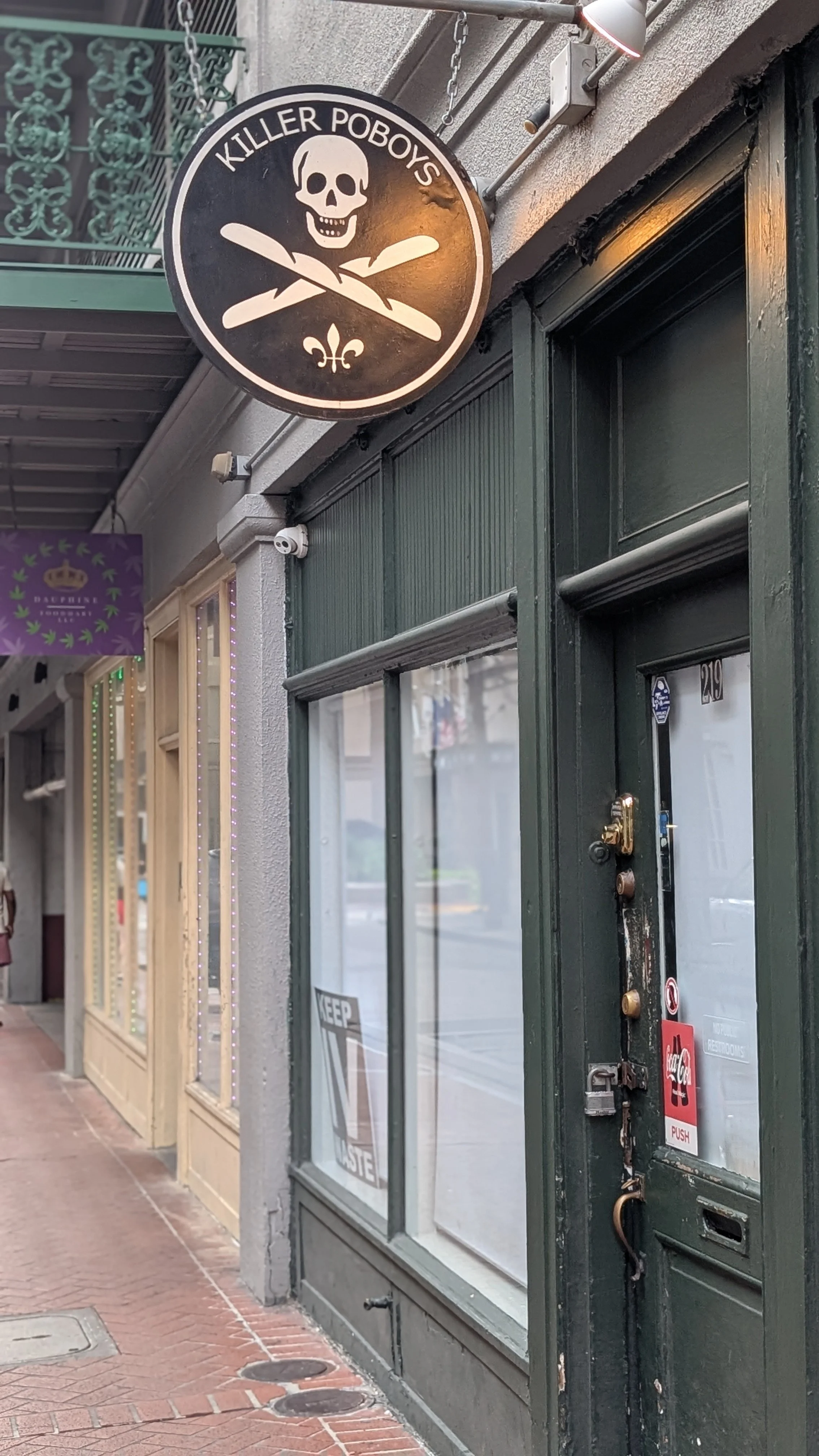 The French Quarter never disappoints in the morning light. We wandered cobbled streets, caught echoes of jazz rolling from open-air markets, and paused for a midday bite at the original Killer PoBoy location on Dauphine—not the bar-adjacent Erin Rose outpost, but the quieter corner spot known by locals for its bold fusion of global flavor and streetwise charm.